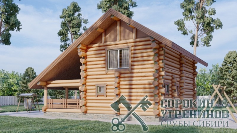 Проект дом-баня из бревна средним диаметром 360мм, размер сруба дома 9,7х10,7м, общая площадь дома 122м2, объём бревна в срубе 105м3. Двухэтажная Дом-баня строился по индивидуальному проекту. Установлена песь Гефест Сочи-2 в серпентините. Кровля из натуральной керамической черепицы. Установка сруба производилась в Новосибирской области в 2021 году в деревне Абрашино.